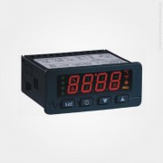 Controladores Digitais de temperatura, umidade, pressão, tempo e universais no formato 74x32mm, display LED com ícones coloridos, 4 teclas com frontal sobre-injetado IP65 para instalação em painel.